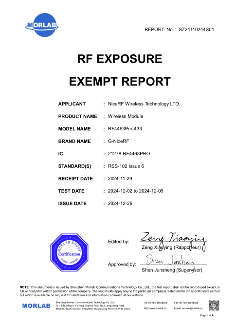 Complete certification report. Click to view the detailed attachment of RF4463PRO-433.